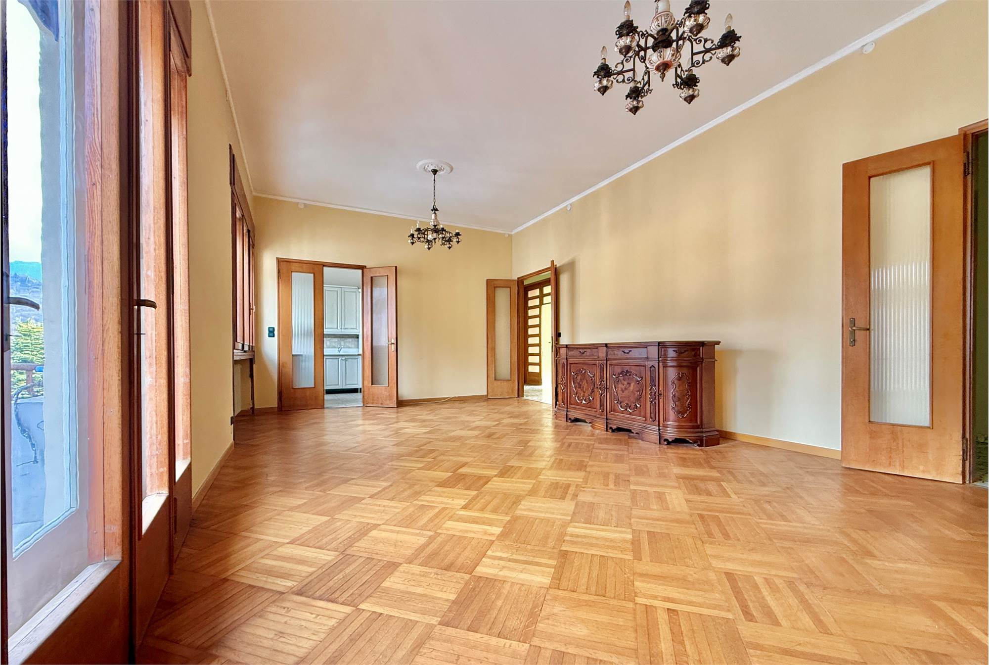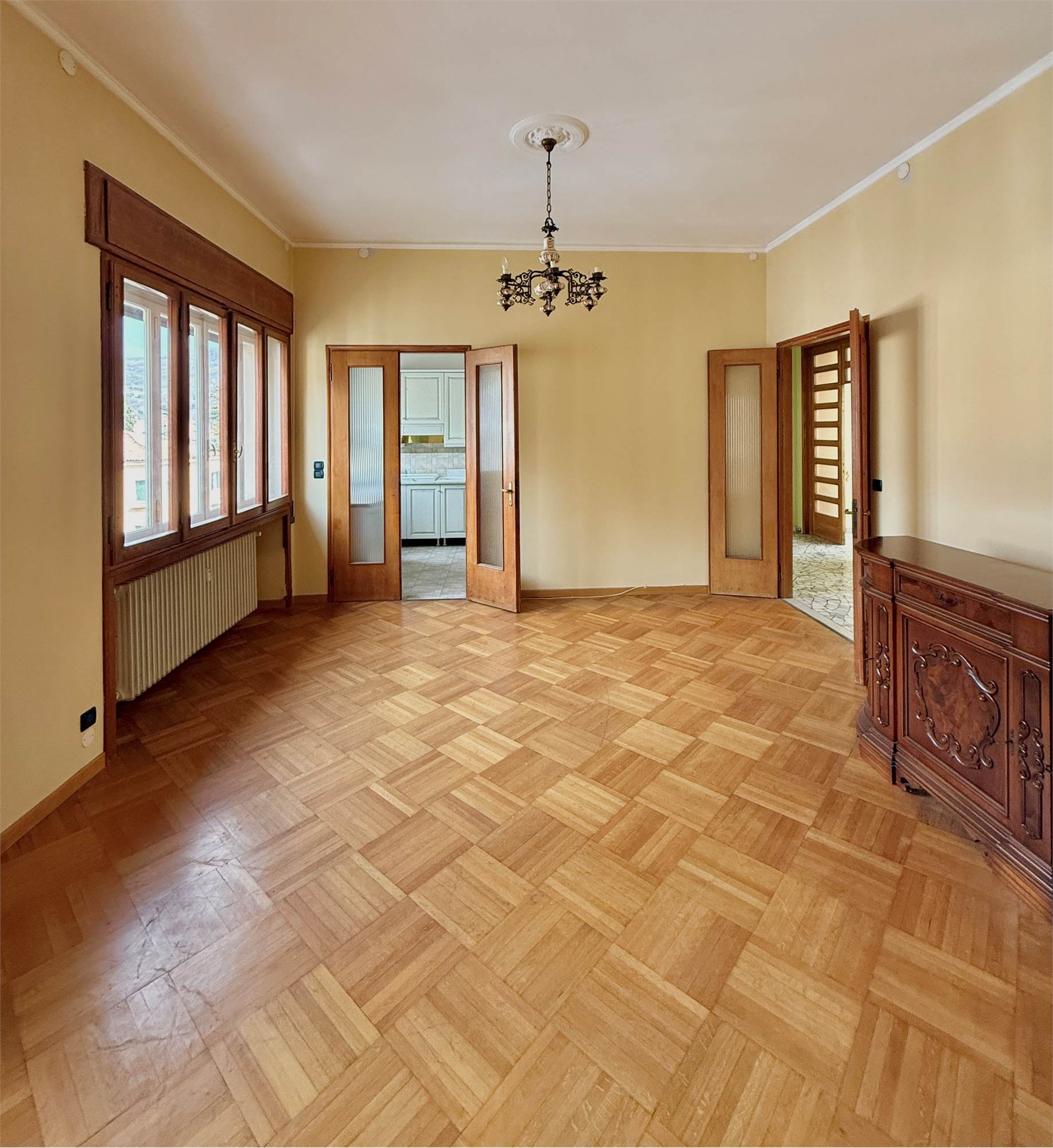 • gli infissi in legno, robusti e di fattura artigianale, attualmente dotati di vetro singolo, trarrebbero beneficio dall’installazione di vetrocamera, migliorando isolamento termico e acustico senza alterarne il carattere originale;