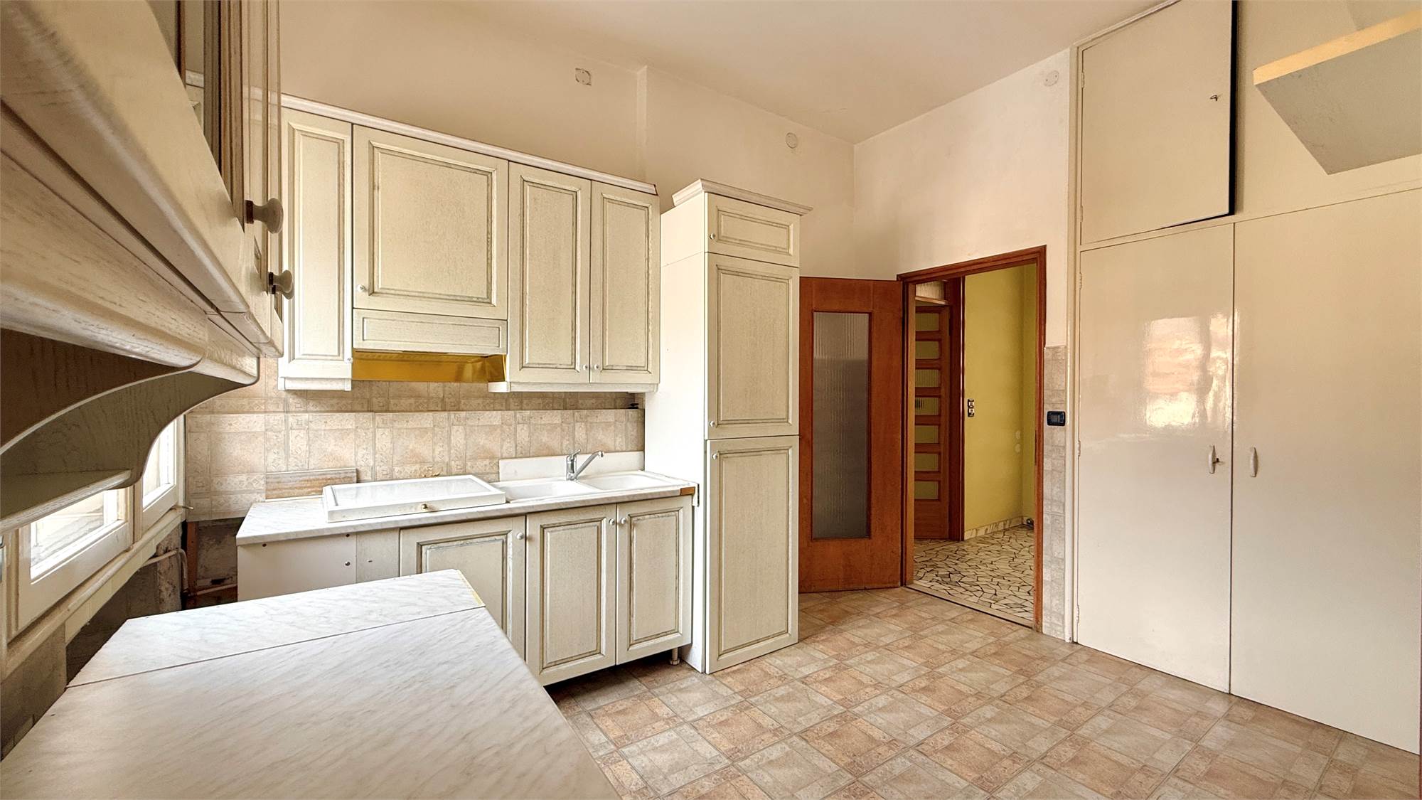 l’appartamento è attualmente abitabile, sebbene una ristrutturazione generale sia vivamente consigliata per valorizzarne pienamente le qualità architettoniche e adattarlo alle esigenze contemporanee.