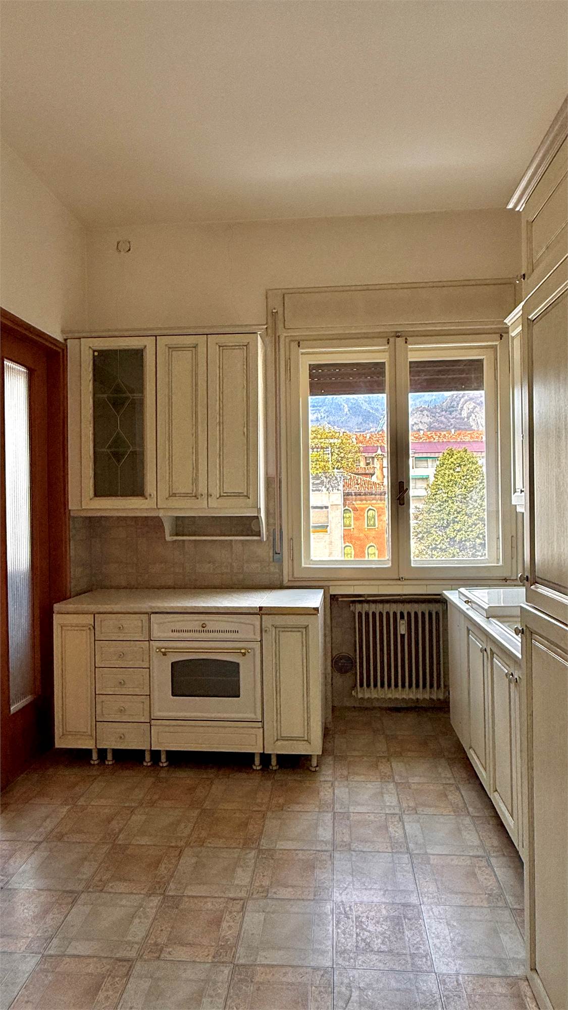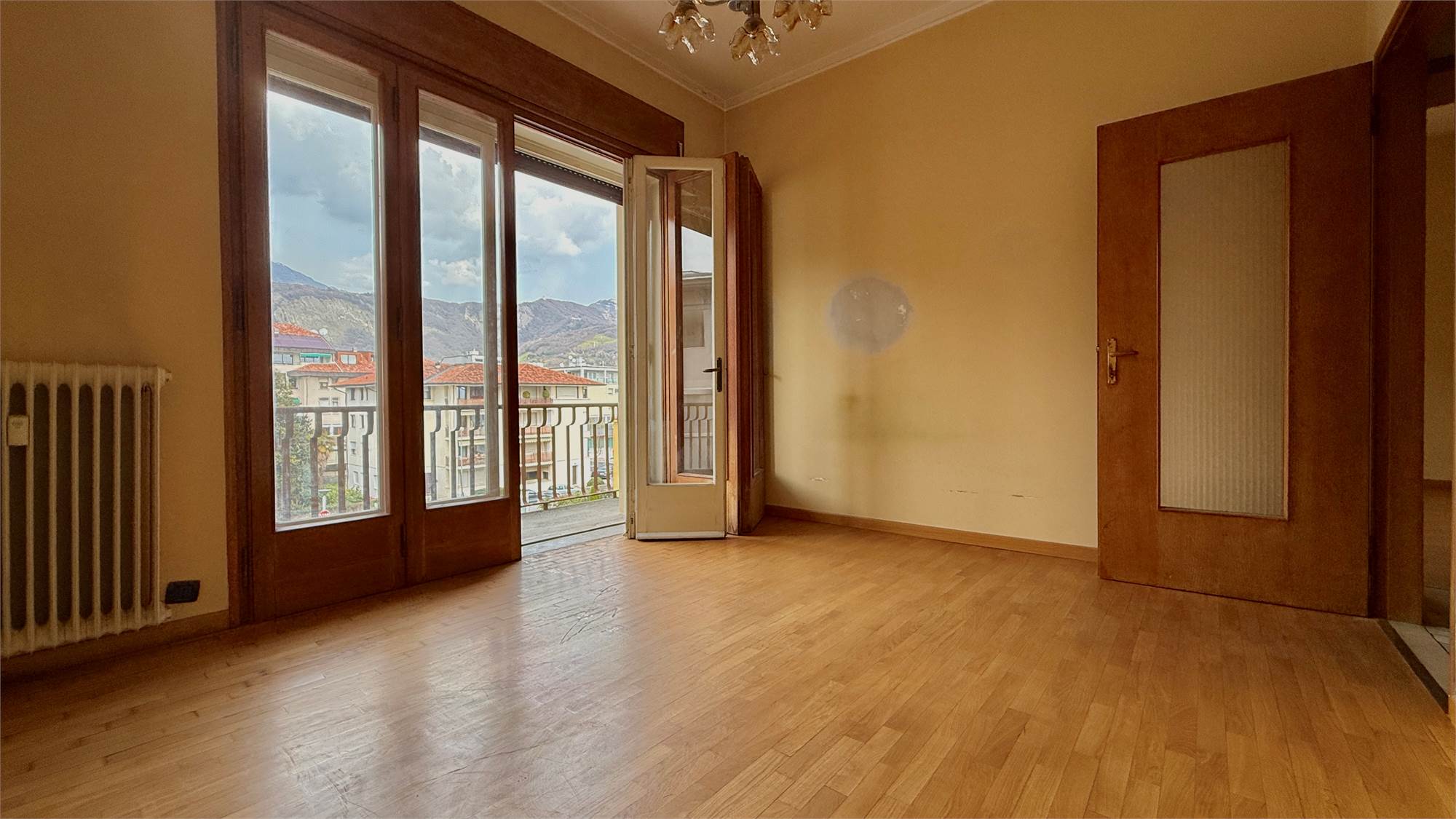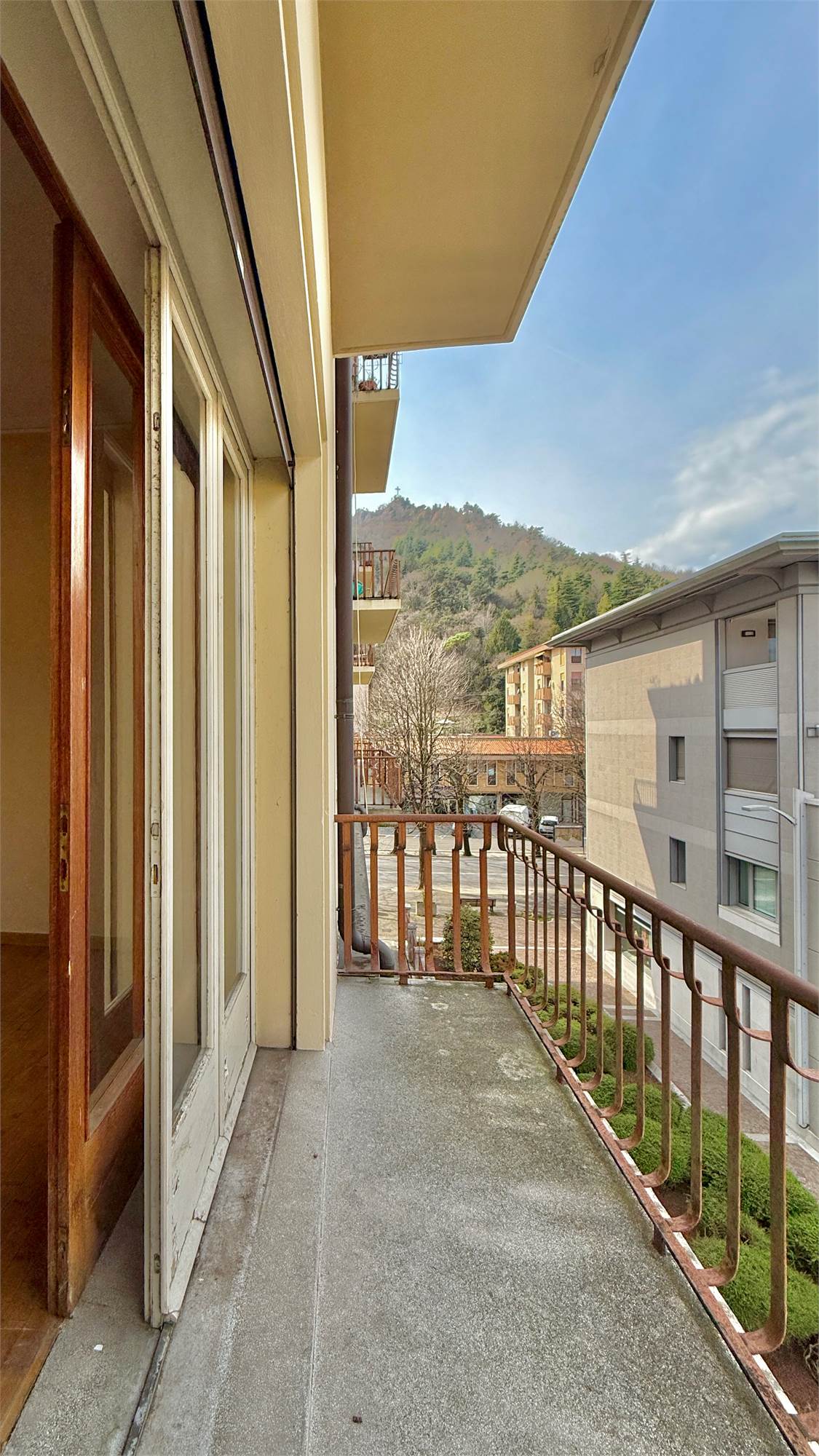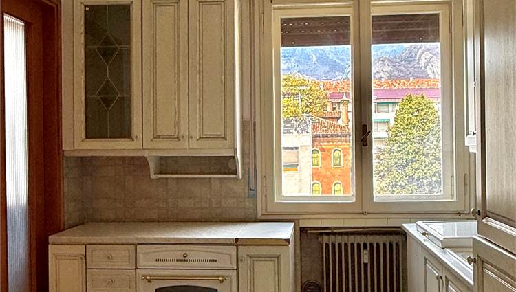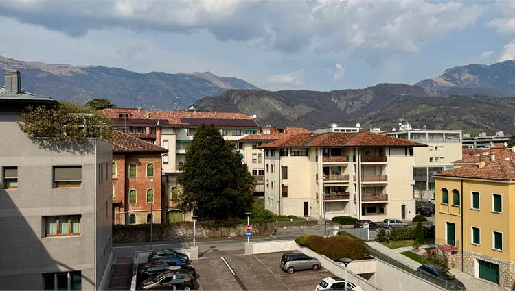 • soggiorno con zona pranzo e accesso al terrazzo esposto a nord, con vista sul Santuario di Sant’Augusta e sul Monte Pizzoc;